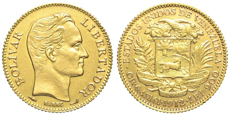Venezuela 20 Bolivares 1912 - Venezuela – Repubblica (dal 1823)20 Bolivares 1912 – AU mm 21,5Leggermente pulita BB