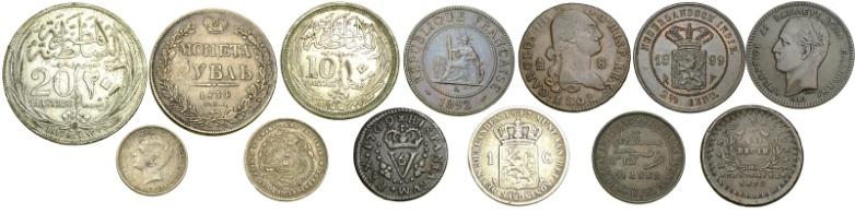 Lotto di 13 monete vari Stati - Lotto di 13 monete vari Stati, alcune in argento:Argentina ; Cina ; Egitto ; Grecia ; Indie Olandesi ; ...