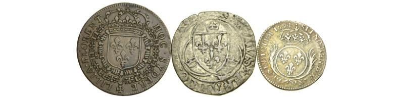 Francia – Lotto di 3 Monete - Francia – Lotto di 3 Monete:Bianco 1422-1461 Carlo VII BB ; 1/12 Scudo 1694 BB ; Sol 1643-1715 BB