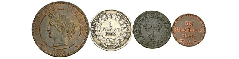 Francia – Lotto di 4 Monete - Francia – Lotto di 4 Monete:Double Tournois 1605 MB-BB ; Centime 1848 A q.FDC ;10 Centimes 1873 A SPL-FDC ...
