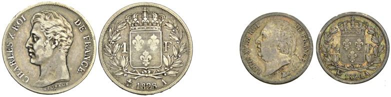 Francia – Lotto di 2 Monete - Francia – Lotto di 2 Monete:Franco 1828 A BB ; Mezzo Franco 1820 A q.SPL