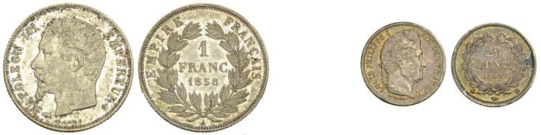 Francia – Lotto di 2 Monete - Francia – Lotto di 2 Monete:Franco 1858 A SPL-FDC ; 25 Centimes 1847BB Rara BB-SPL