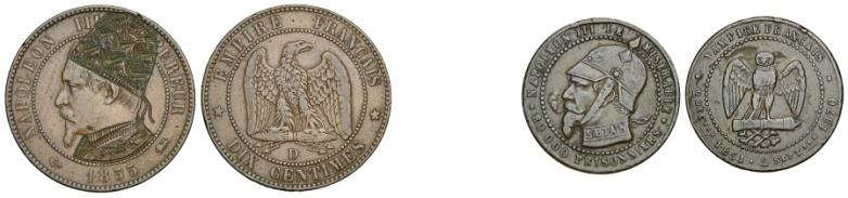 Francia Lotto di 2 Gettoni satirici - Francia – Napoleone III (1852-1870) Lotto di 2 Gettoni satirici