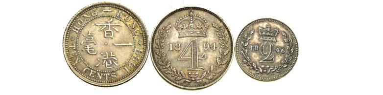 Gran Bretagna e Colonie – Lotto di 3 Monete - Gran Bretagna e Colonie – Lotto di 3 Monete:4 Pence 1894 SPL ; 2 Pence 1846 SPL ; Hong ...