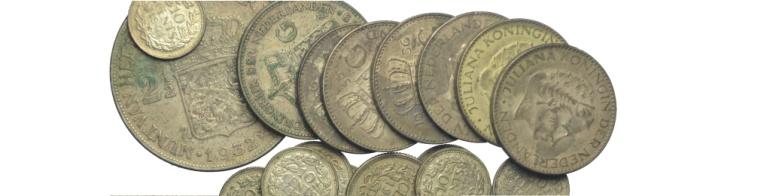 Olanda Lotto di 18 monete in argento - Olanda – Lotto di 18 monete in argento dal 2,5 Fiorini al 10 Cent. Annate dal 1929 al 1956 BB÷SPL
