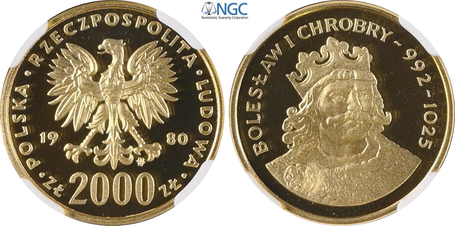 Poland, People's Republic (1952-1989), 2000 Zlotych 1980 Boleslaw I Chrobry, Warsaw mint, mintage: 2500, KM-Y116, Au (.900) 21 mm, 8 g, in ...