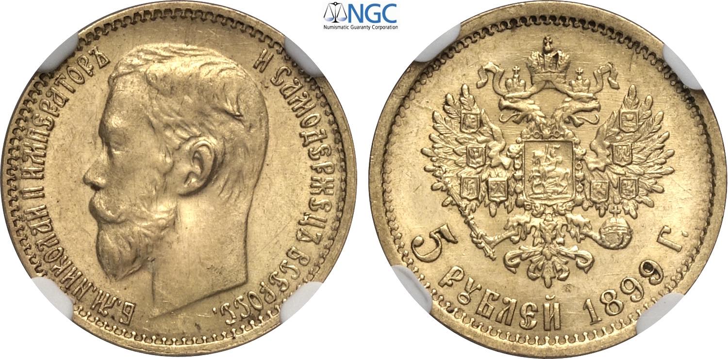 Russia, Nicholas II (1894-1917), 5 Roubles 1899-EB, S. Petersburg mint, Bit-23, Au 18,5 mm, 4,3 g, in Slab PCGS MS64 (only 1 coin is graded ...
