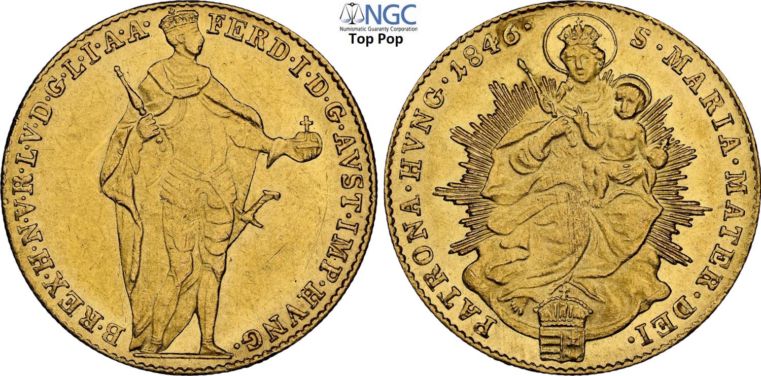 Hungary, Ferdinand I (1835-1848), Ducat 1846, Kremnitz mint, Au 20 mm, 3,49 g, in Slab NGC MS61 Top Pop (cert. 6654144035)