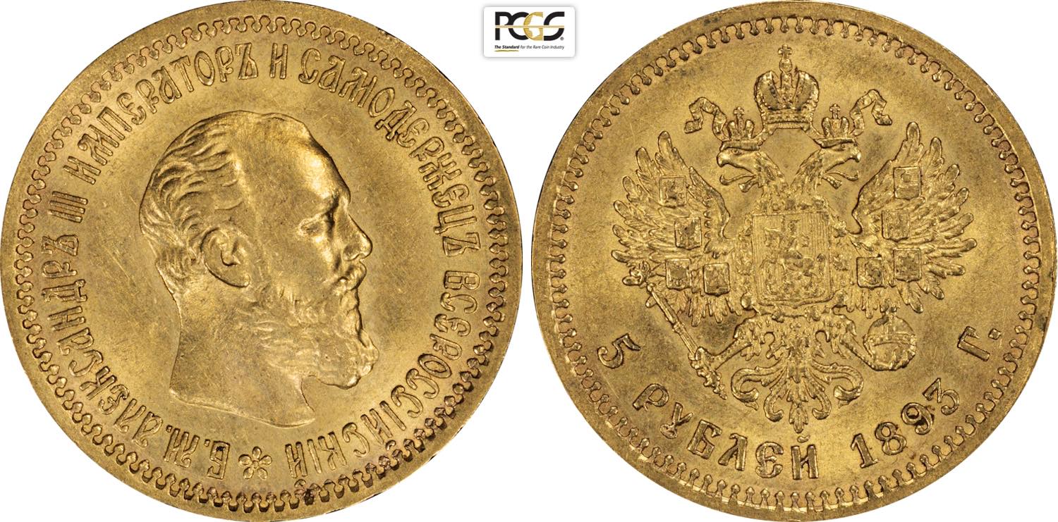Russia, Alexander III (1881-1894), 5 Roubles 1893, S. Petersburg mint, Bit-39, Au 21,3 mm, 6,45 g, in Slab PCGS MS61