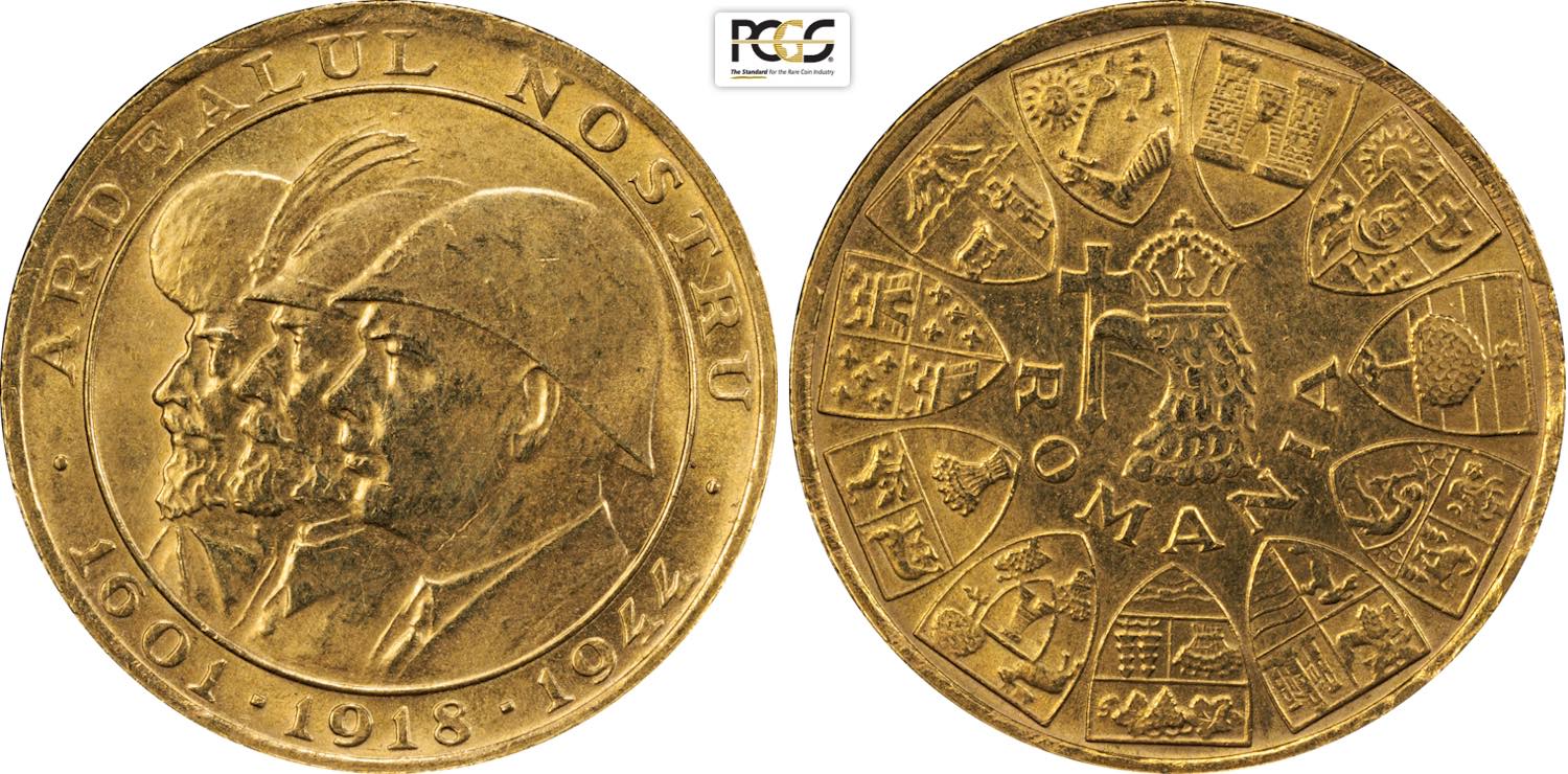 Romania, Mihai I (1940-1947), 20 Lei 1944, Bucharest mint, Au 21 mm, 6,55 g, in Slab PCGS MS63