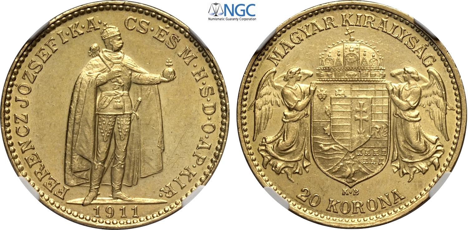 Hungary, Franz Joseph I (1848-1916), 20 Korona 1911-KB, Kremnitz mint, Rara, Au 21 mm, 6,77 g, in Slab NGC MS62 (only 1 coin is graded ...