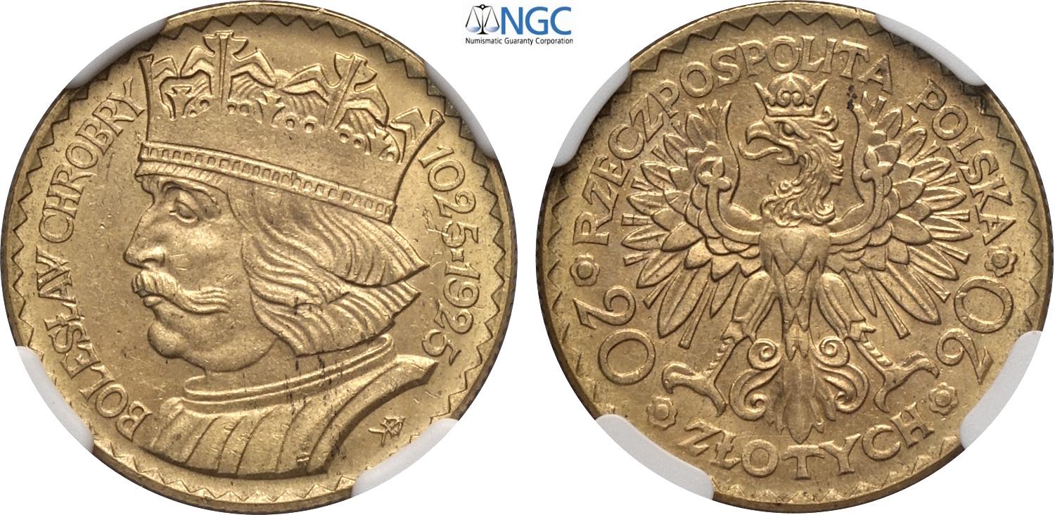 Poland, Second Republic (1918-1939). 20 Zlotych 1925, Warsaw mint, Au 21 mm, 6,45 g, in Slab NGC MS64