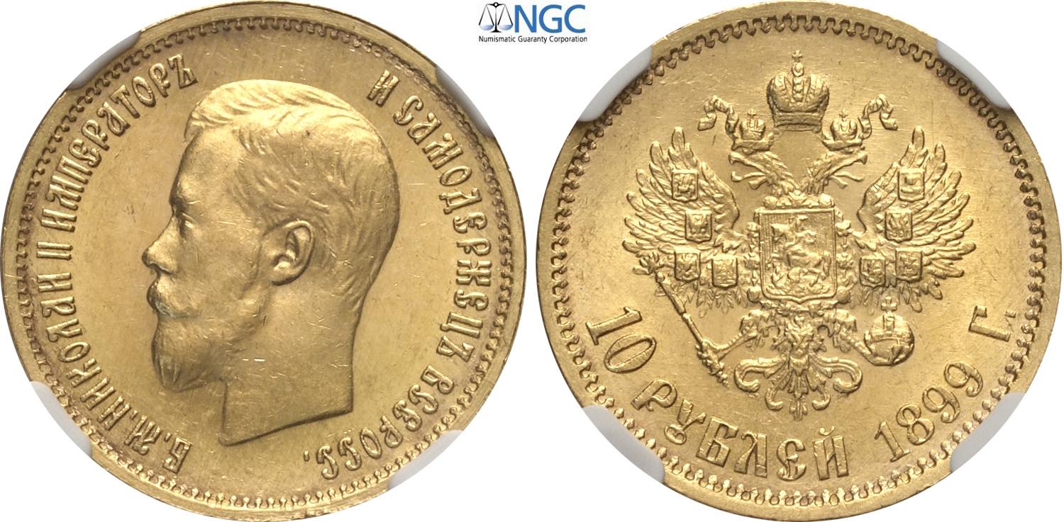 Russia, Nicholas II (1894-1917), 10 Roubles 1899-O3, S. Petersburg mint, Bit-6, Au 22,5 mm, 8,6 g, in Slab NGC MS64