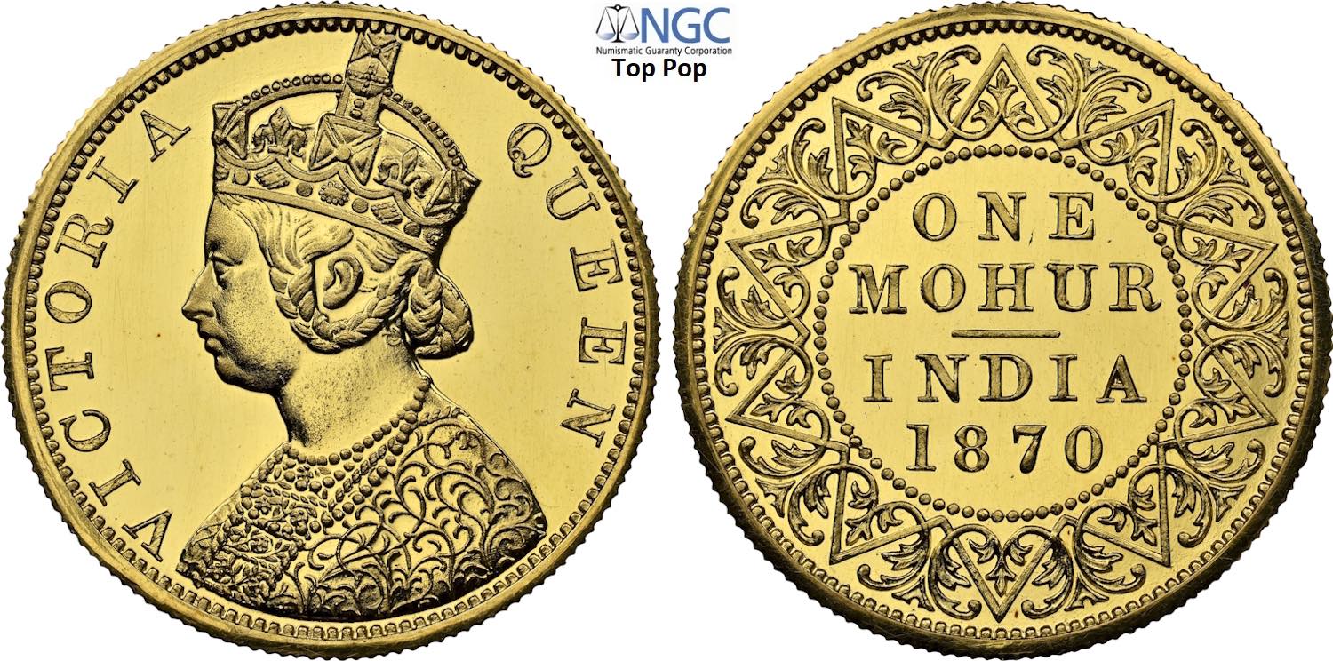 India British, Victoria (1837-1901), Proof Restrike Mohur 1870(C), Calcutta mint, Au 26 mm, 11,66 g, eccezionale conservazione, in Slab NGC ...