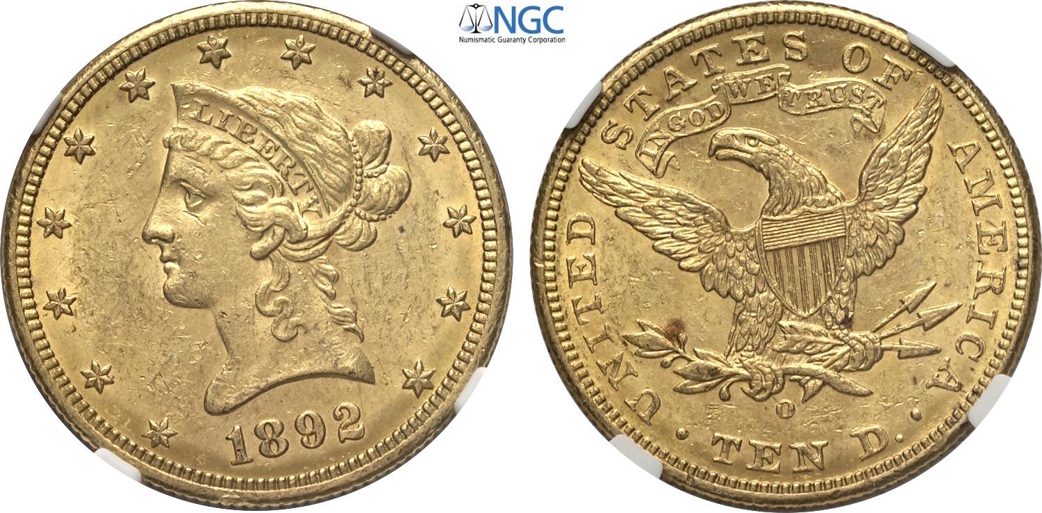 United States of America, Federal Republic (1776-), Coronet Head eagles, 10 Dollars 1892-O, New Orleans mint, Au 27 mm, 16,72 g, in Slab ...