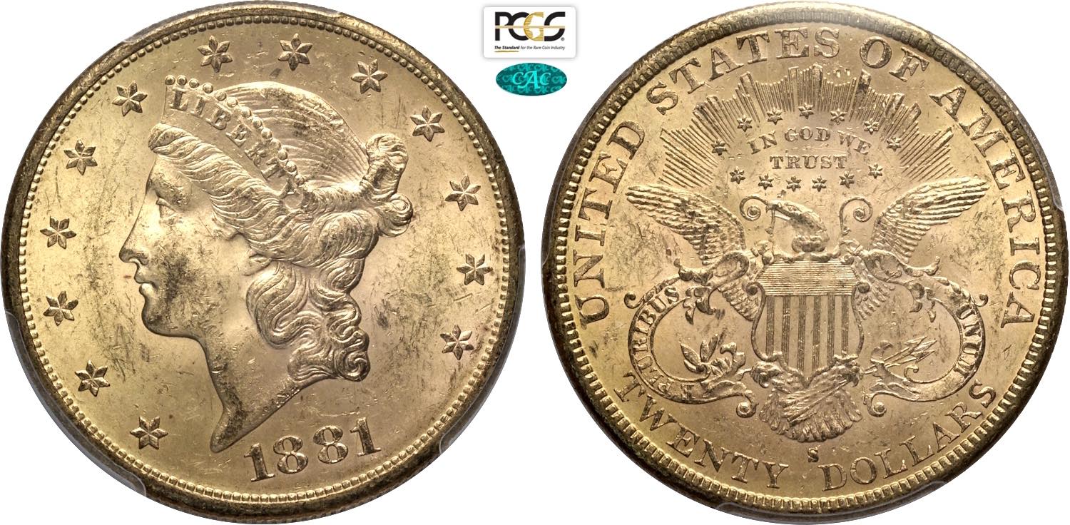 United States of America, Federal Republic (1776-), Liberty Head double eagles, 20 Dollars 1881-S, San Francisco mint, Au 34,1 mm, 33,43 g, ...