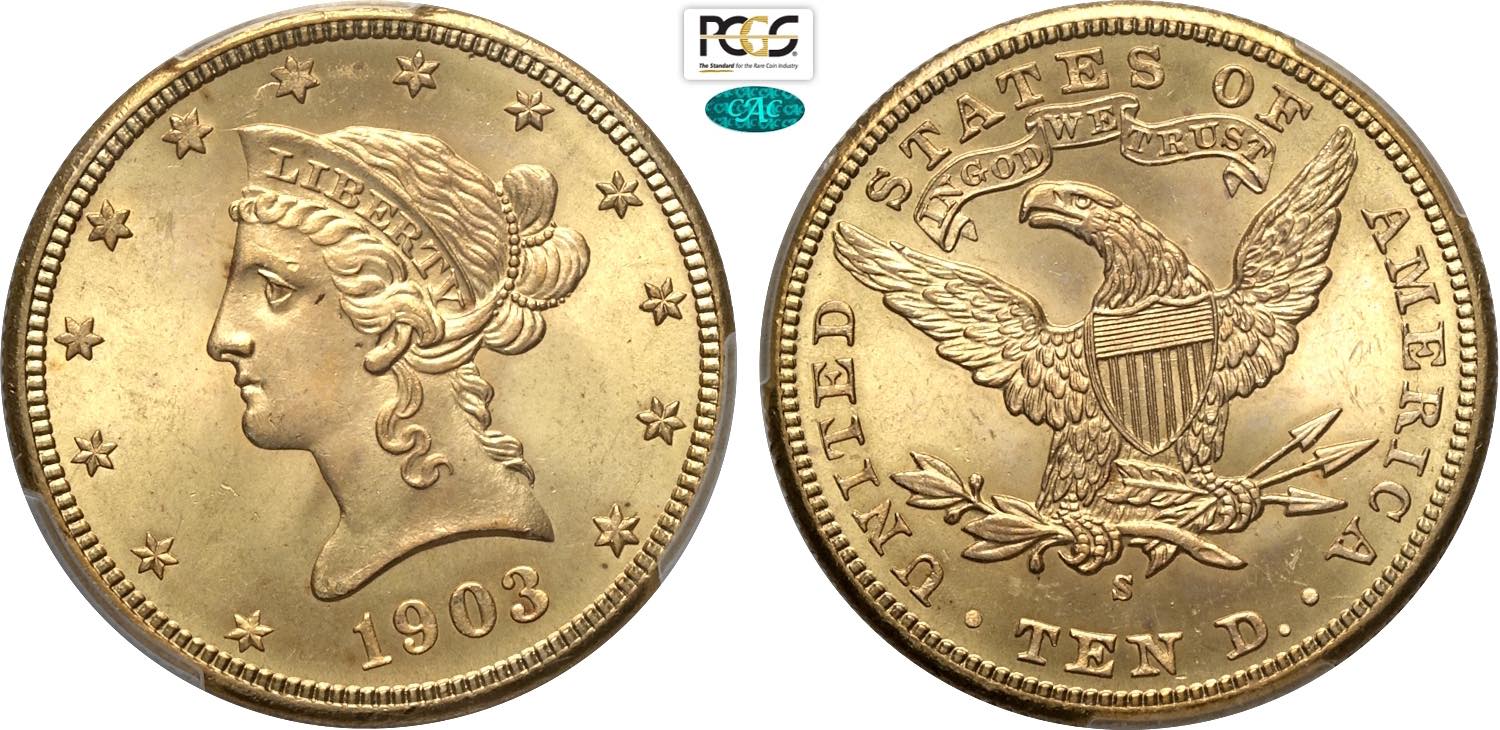 United States of America, Federal Republic (1776-), Coronet Head eagles, 10 Dollars 1903-S, San Francisco mint, Au 27 mm, 16,72 g, ...