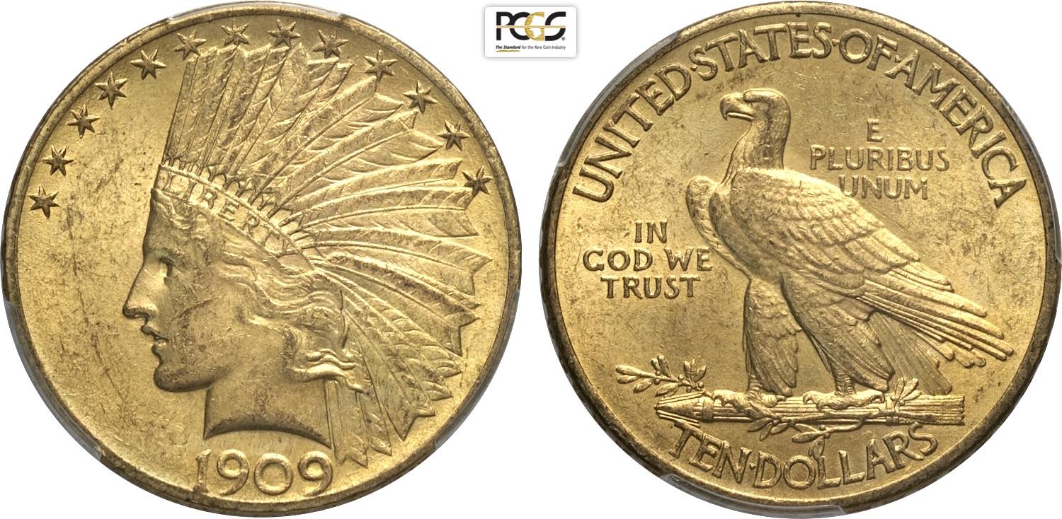 United States of America, Federal Republic (1776-), Indian Head eagles, 10 Dollars 1909, Philadelphia mint, Au 27 mm, 16,72 g, in Slab PCGS ...