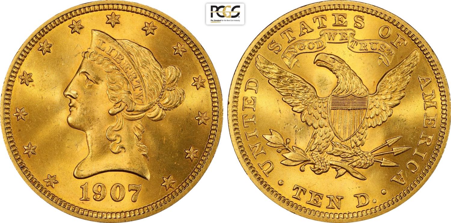 United States of America, Federal Republic (1776-), Coronet Head eagles, 10 Dollars 1907, Philadelphia mint, Au 27 mm, 16,72 g, ...