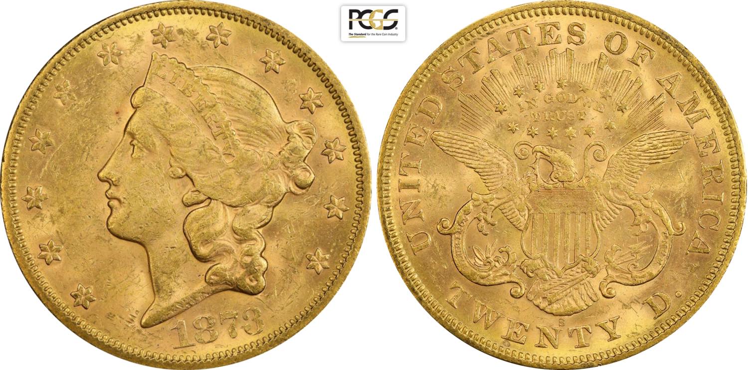 United States of America, Federal Republic (1776-), Liberty Head double eagles, 20 Dollars 1873-S closed 3, San Francisco mint, Au 34,1 mm, ...