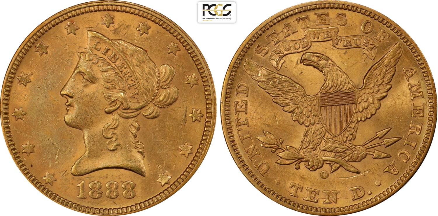 United States of America, Federal Republic (1776-), Coronet Head eagles, 10 Dollars 1888-O, New Orleans mint, Au 27 mm, 16,72 g, in Slab ...