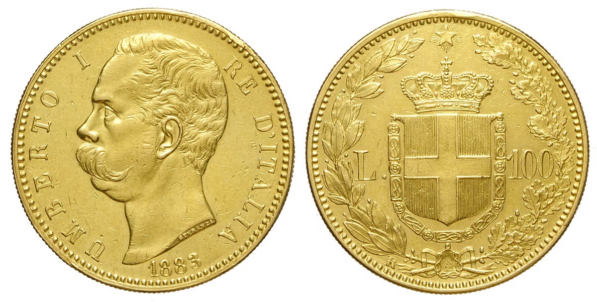 Regno d'Italia, Umberto I, 100 Lire 1883, Au mm 35 bordo ripreso e pulitura altrimenti q.SPL