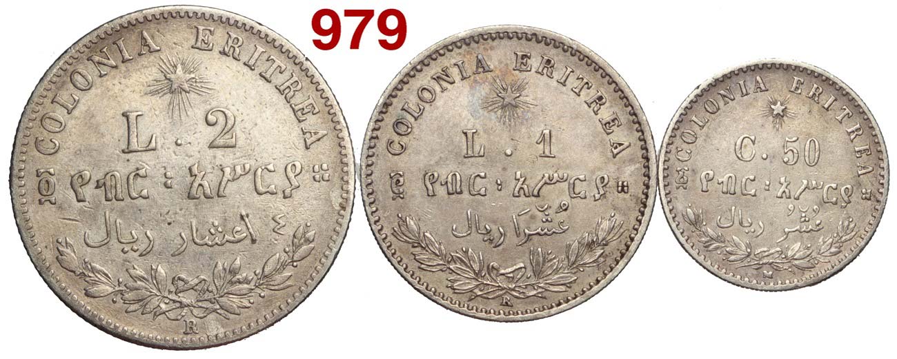 Regno d'Italia - Umberto I colonia Eritrea - 2 Lire 1890 - Lira 1891 - 50 Centesimi 1890 - lotto di 3 monete BB/BB+