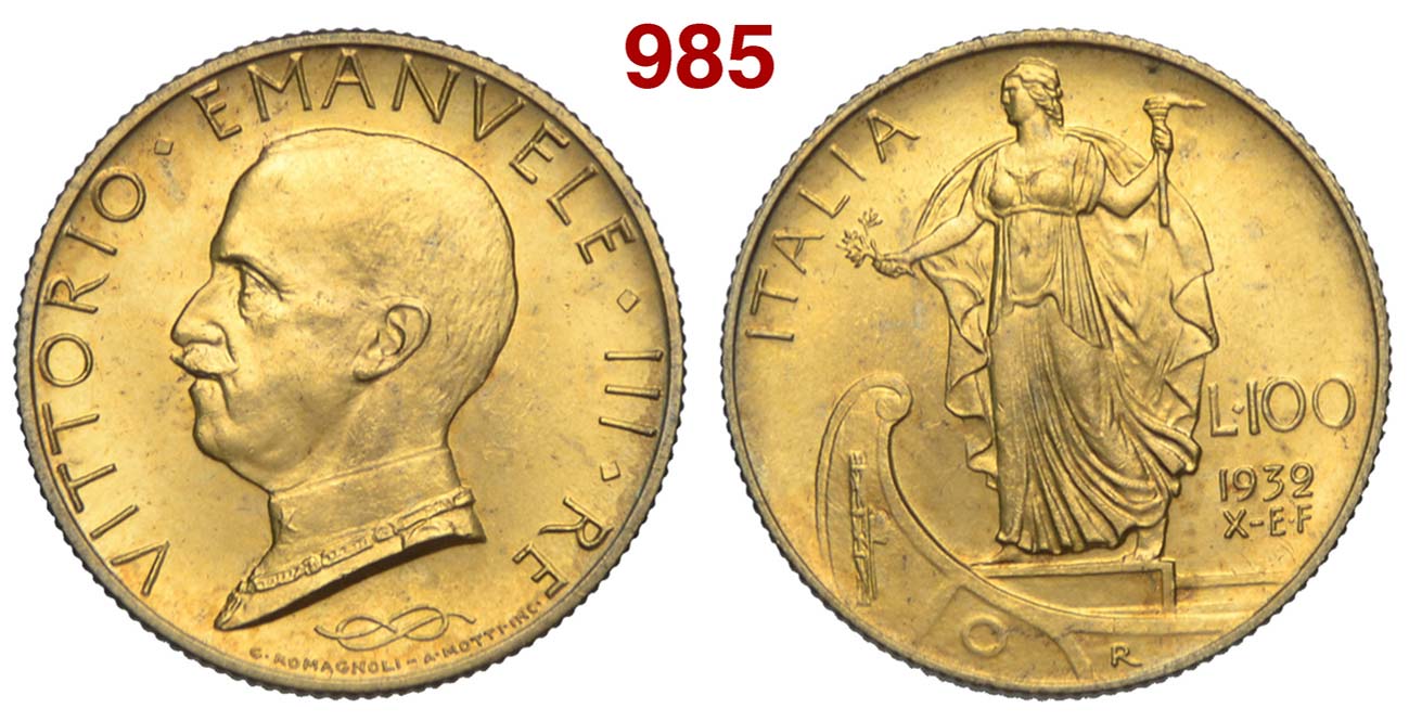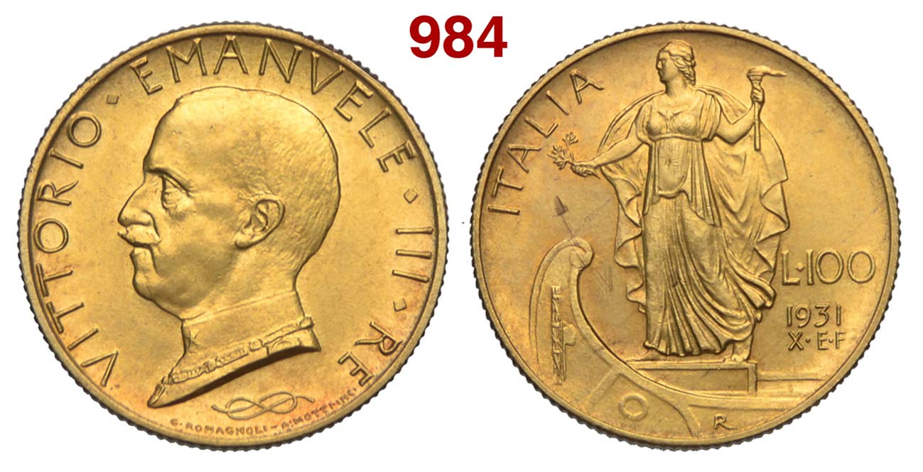 Regno d'Italia - Vittorio Emanuele III - 100 Lire 1931 anno IX - AU mm 23,5 - sigillata FDC da B. Paier