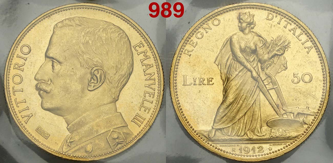 Regno d'Italia - Vittorio Emanuele III - 50 Lire 1912 - Rara AU mm 28 - sigillata SPL/FDC da B. Paier