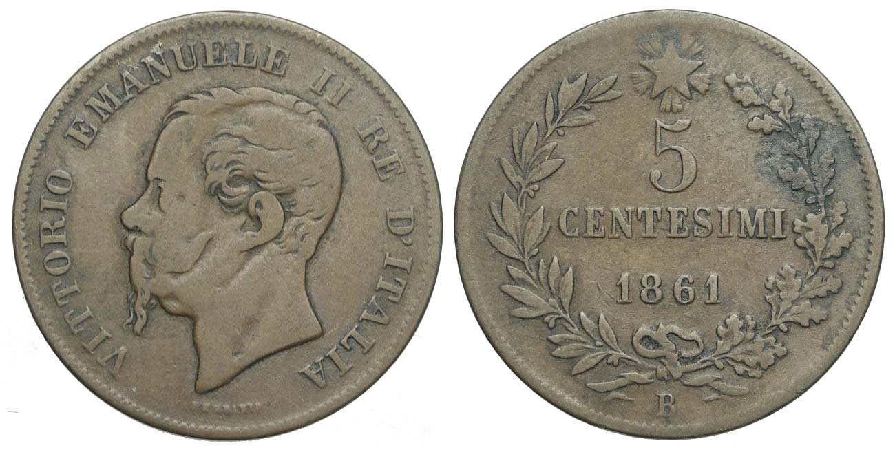 Regno 5 Lire 1861 F