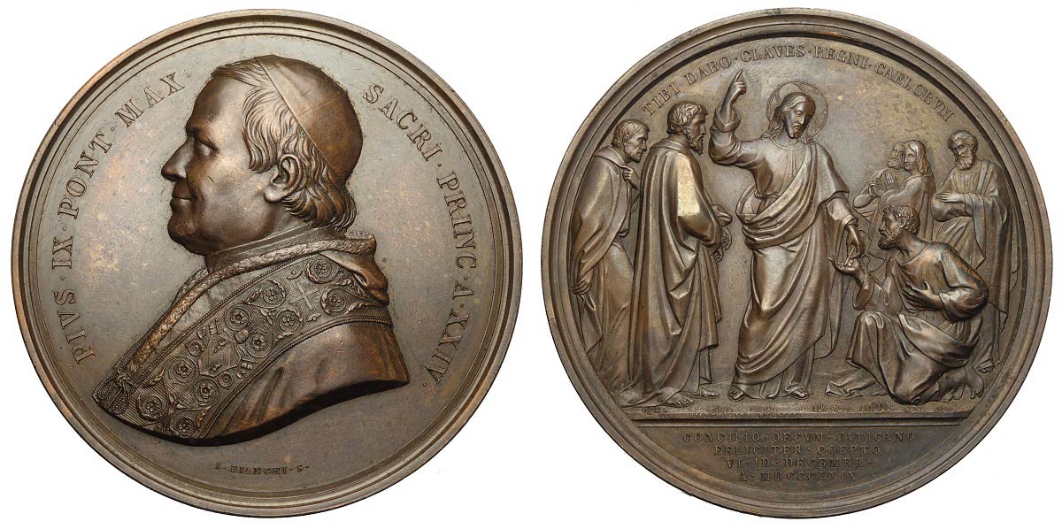 Pio IX - Medaglia a ricordo del Concilio Ecumenico 1869, opus Bianchi, Br, 74mm, R, SPL+