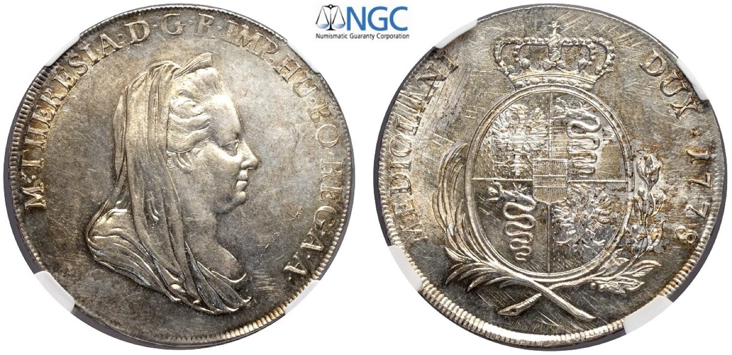 Milano, Maria Teresa d'Asburgo (1740-1780), Scudo 1778, Ag mm 41 in Slab NGC MS61 (erroneamente indicato come Soldo, cert. 5790826019)