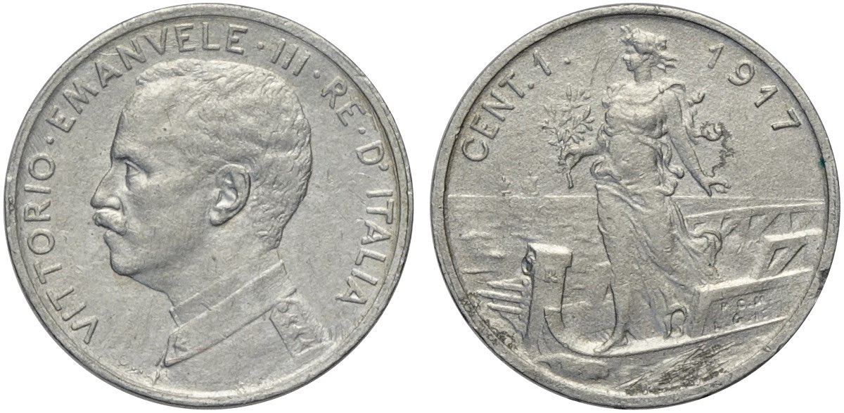Regno d'Italia, Vittorio Emanuele III (1900-1943), Centesimo 1917 Progetto Alluminio, Pag-390 Sim-285/1 RRRR Al mm 15 g 0,34 Questo ...