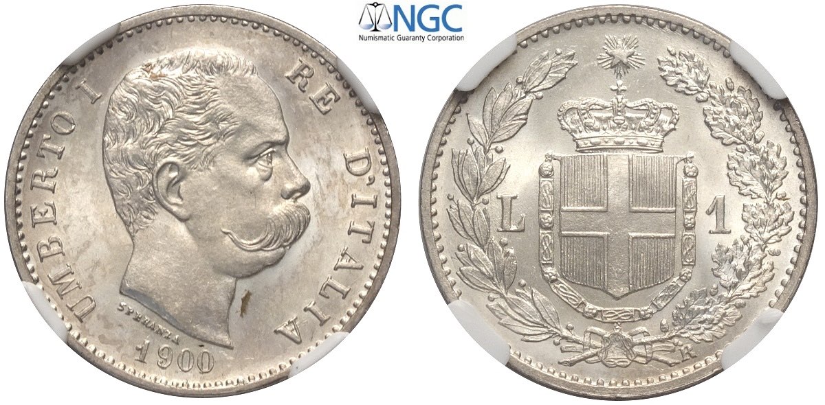 Regno d'Italia, Umberto I (1878-1900), Lira 1900, Ag mm 23, conservazione eccezionale, in Slab NGC MS66