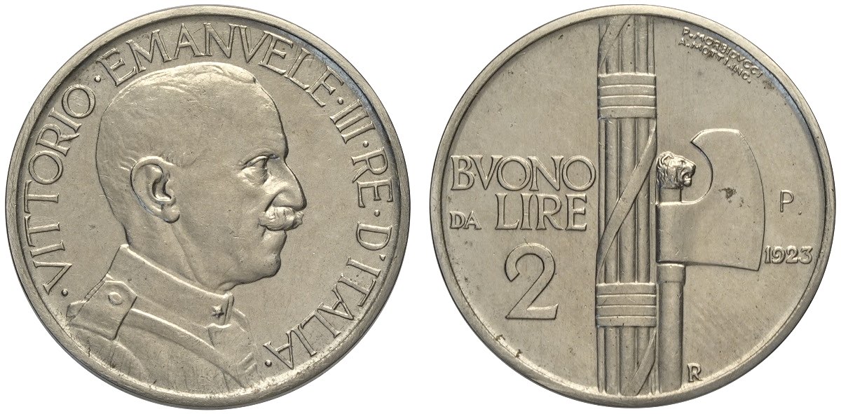 Regno d'Italia, Vittorio Emanuele III (1900-1943), 2 Lire 1923, Ni mm 29 in Slab NGC MS65 (second best grade)