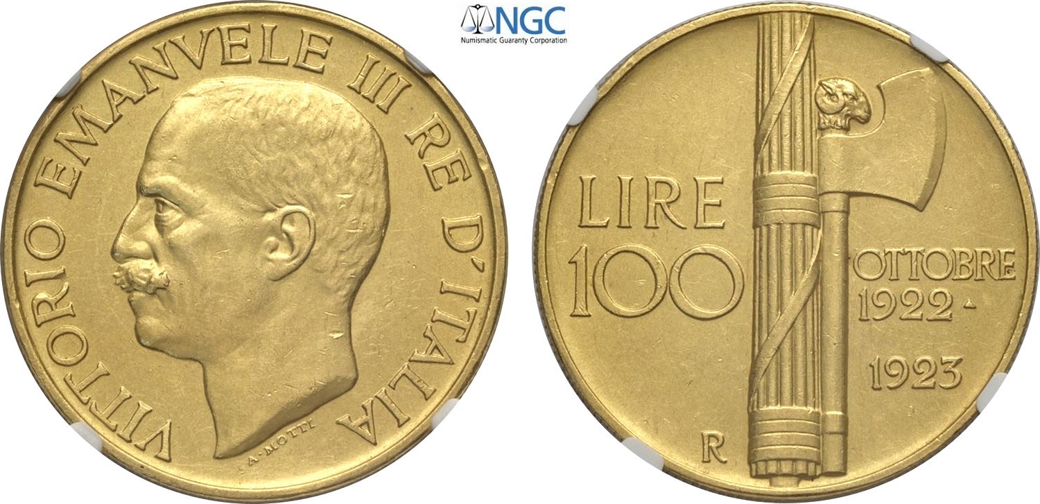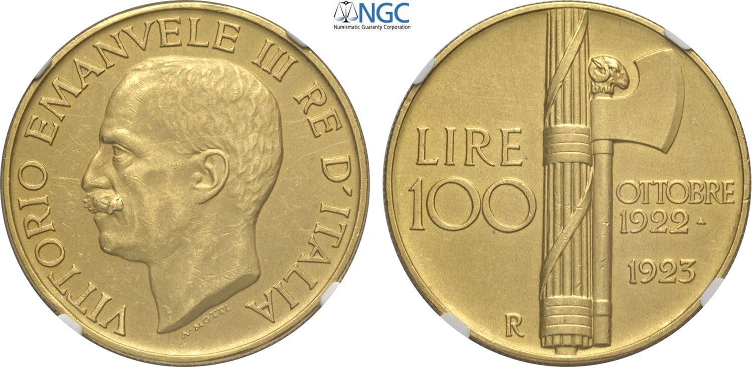 Regno d'Italia, Vittorio Emanuele III (1900-1943), 100 Lire 1923, Rara Au 35 mm 32,25 g, in Slab NGC AU58 Matte