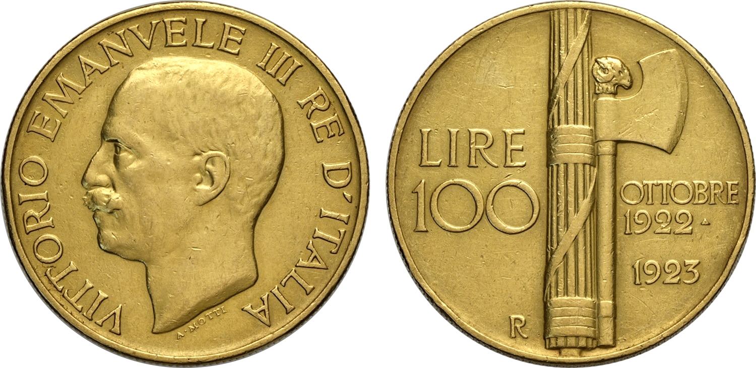 Regno d'Italia, Vittorio Emanuele III (1900-1943), 100 Lire 1923, Rara Au 35 mm 32,18 g, alcuni colpi al bordo altrimenti BB+