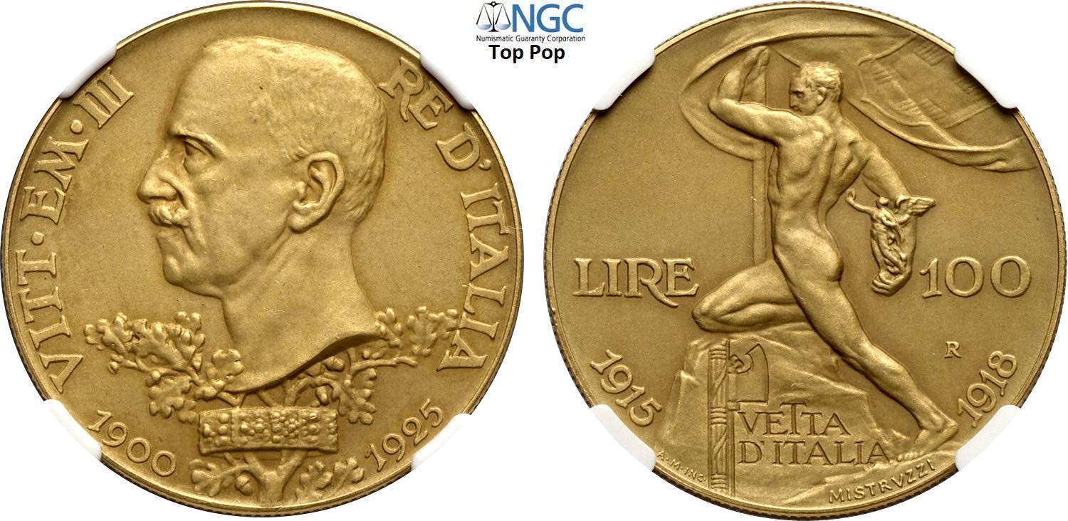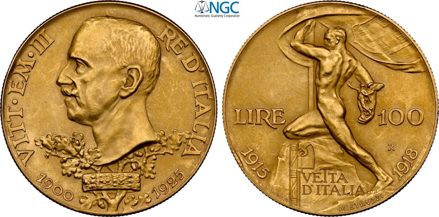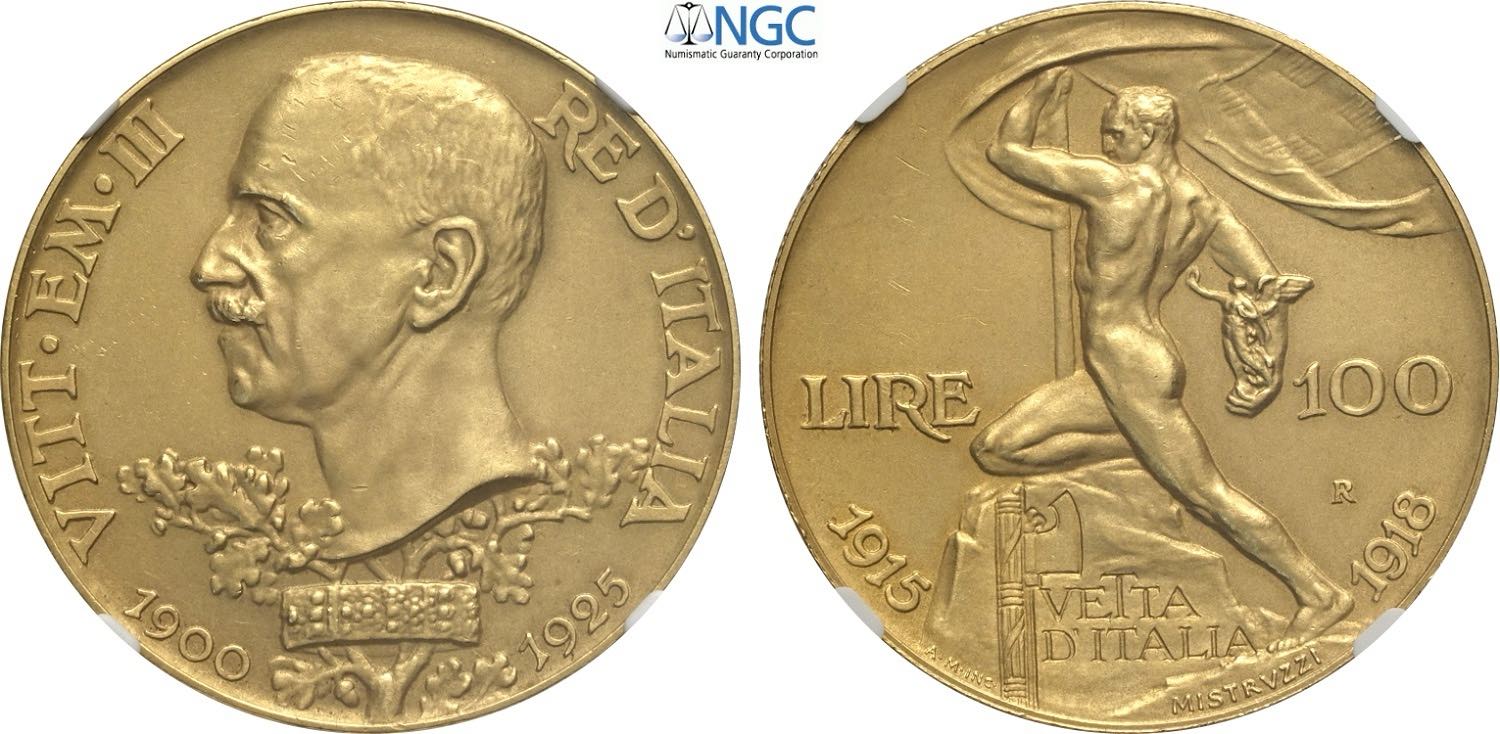 Regno d'Italia, Vittorio Emanuele III (1900-1943), 100 Lire 1925, RR Au 35 mm 32,25 g, in Slab NGC PF61 Matte