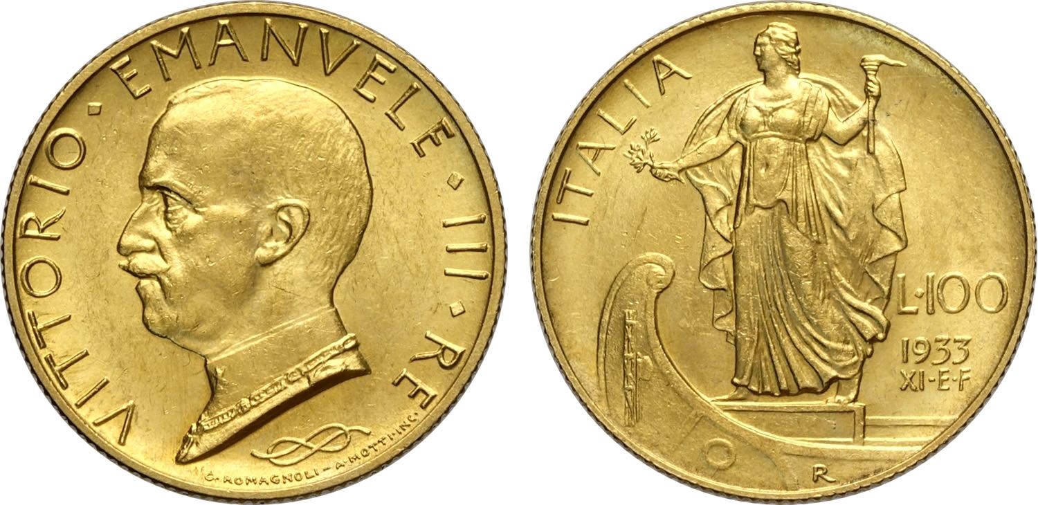 Regno d'Italia, Vittorio Emanuele III (1900-1943), 100 Lire 1933, Rara Au 23,5 mm 8,80 g, SPL-FDC