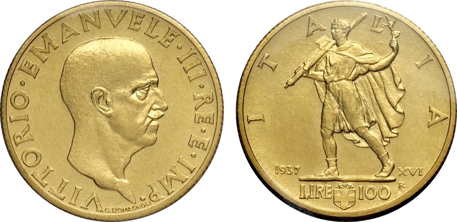 Regno d'Italia, Vittorio Emanuele III (1900-1943), 100 Lire 1937, coniati 249 esemplari, RRR Au 20,7 mm 5,19 g, sigillata FDC da A. Bazzoni