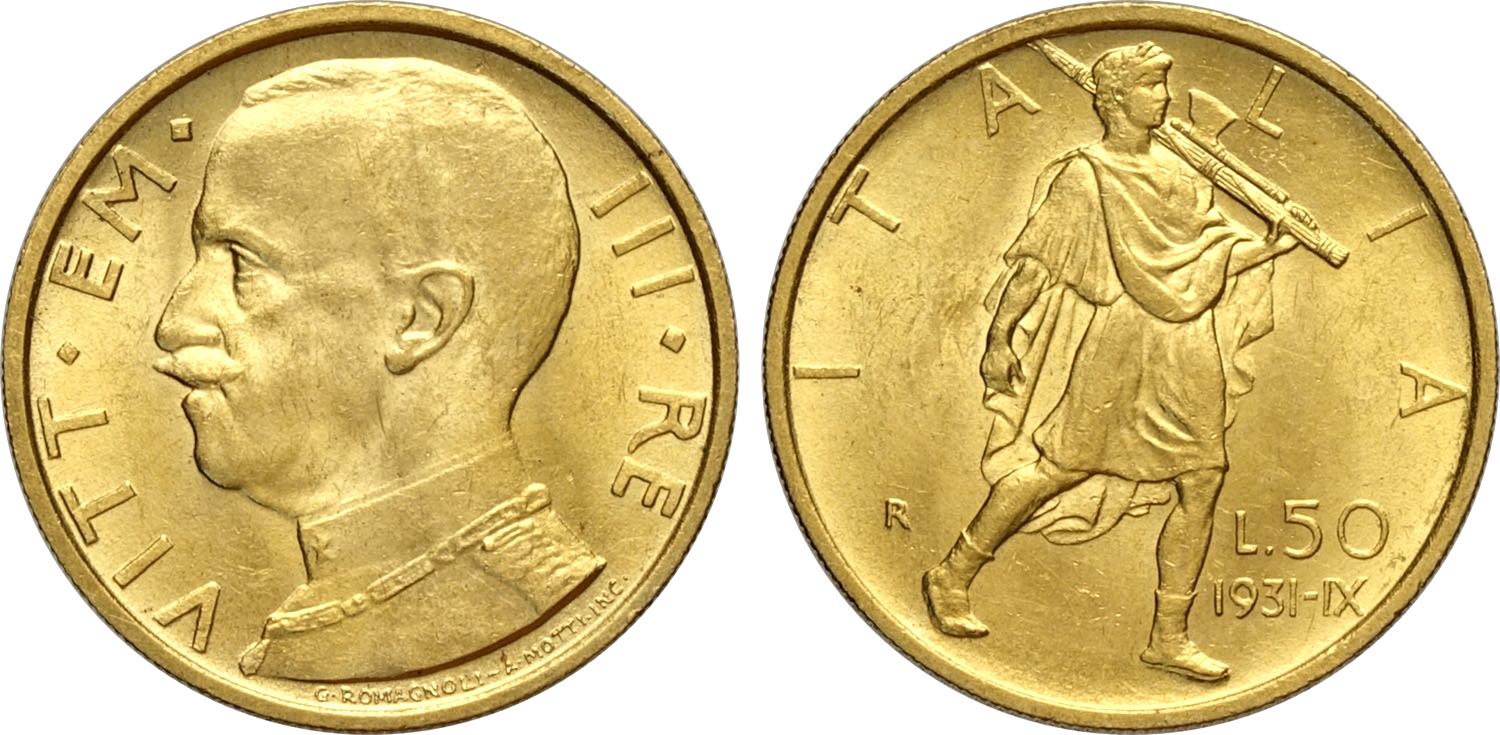 Regno d'Italia, Vittorio Emanuele III (1900-1943), 50 Lire 1931-IX, Au 20,5 mm 4,40 g, q.FDC