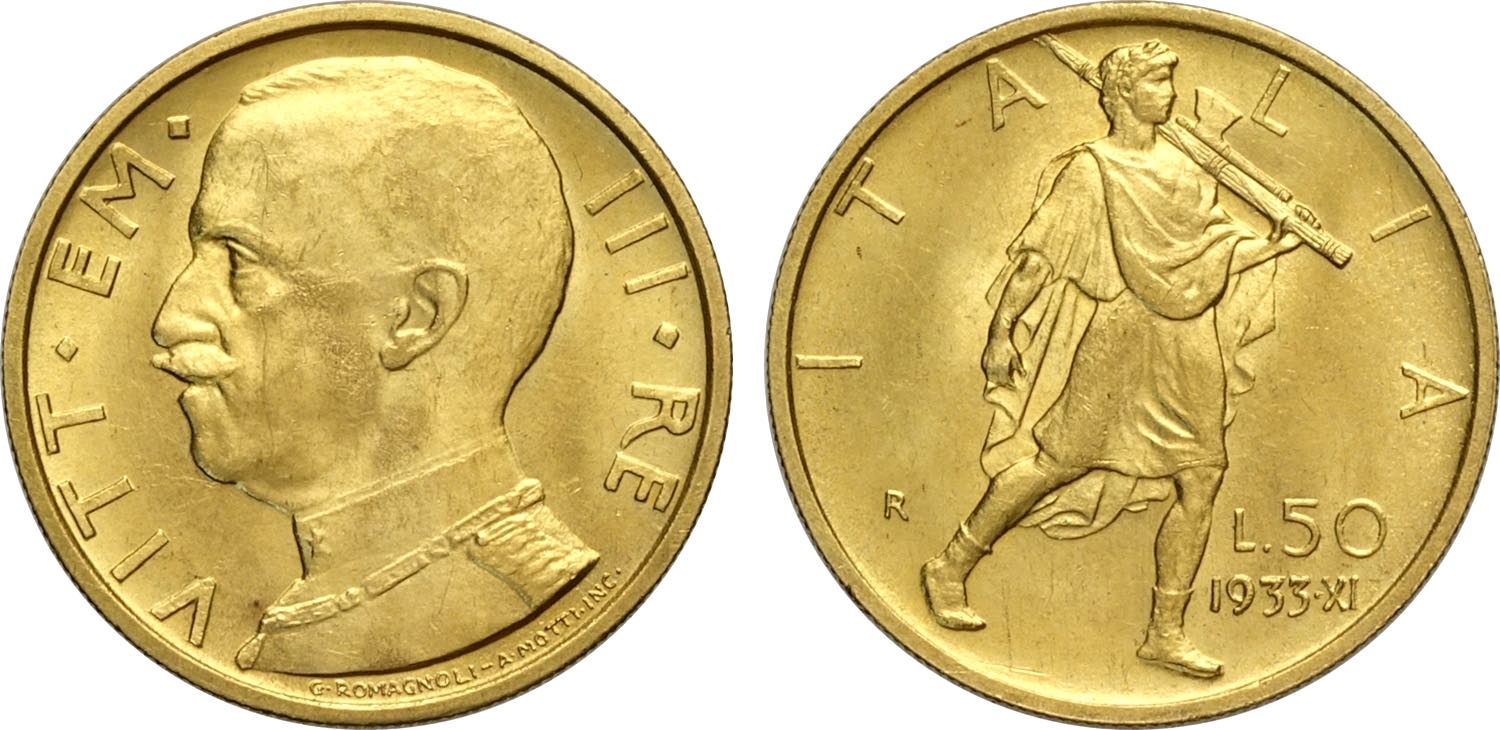 Regno d'Italia, Vittorio Emanuele III (1900-1943), 50 Lire 1933, Rara Au 20,5 mm 4,40 g, SPL-FDC