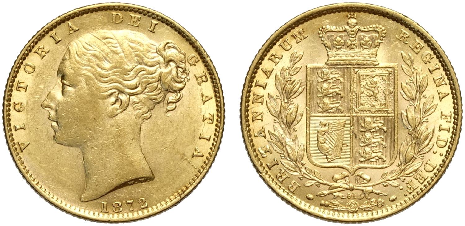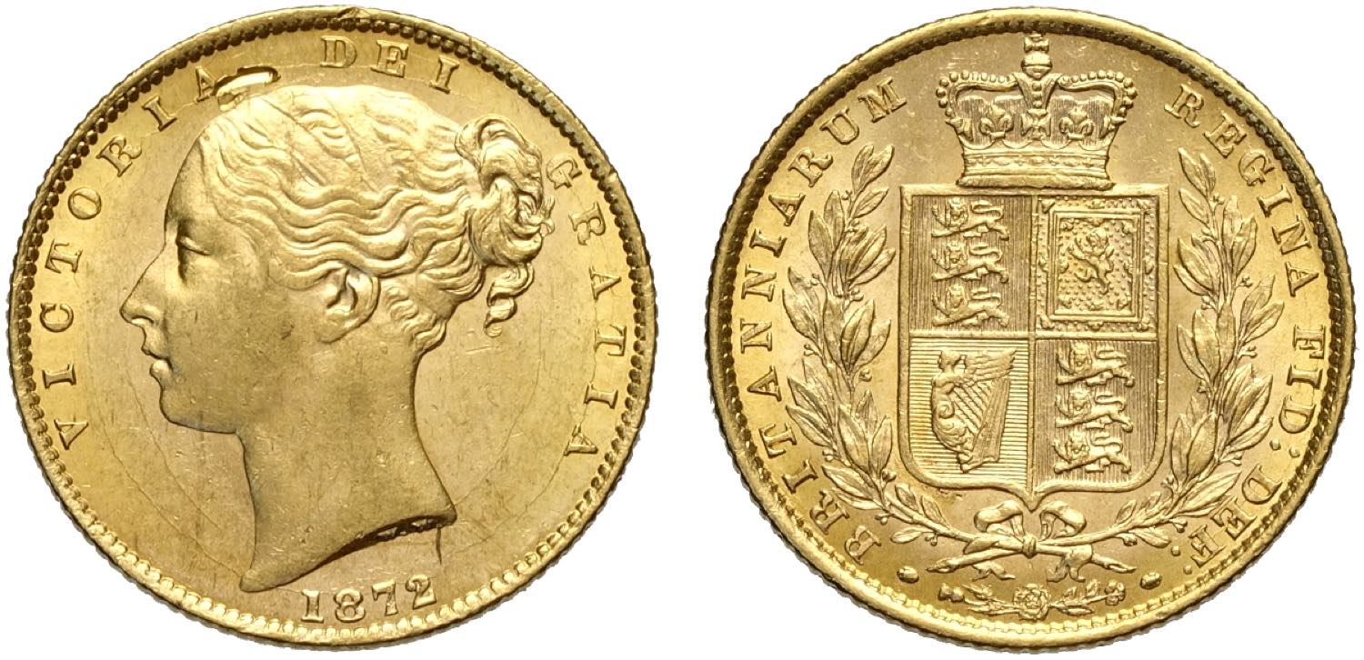 Great Britain, Victoria (1837-1901), Shiled Sovereign 1872 die number 91, Au mm 22 BB-SPL