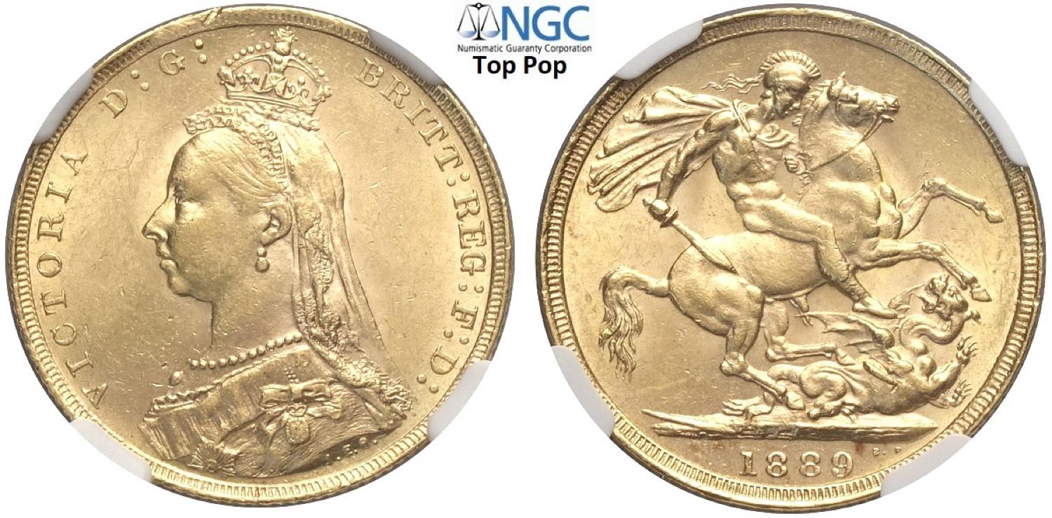 Great Britain, Victoria (1837-1901), Sovereign 1889, Au mm 22 alta conservazione, in Slab NGC MS64 (Top Pop! cert. 5785429020)