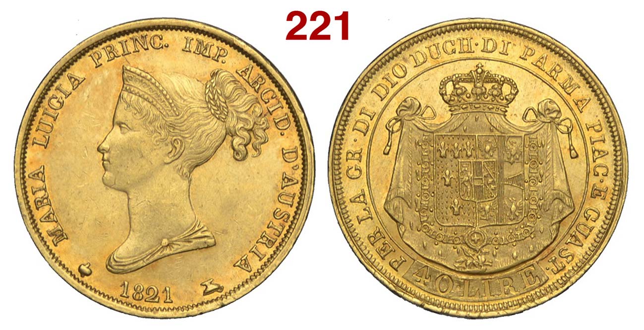 Parma - Maria Luigia - 40 Lire 1821 - RR AU mm 26 g. 12,90 - qualità inusuale per il millesimo - SPL