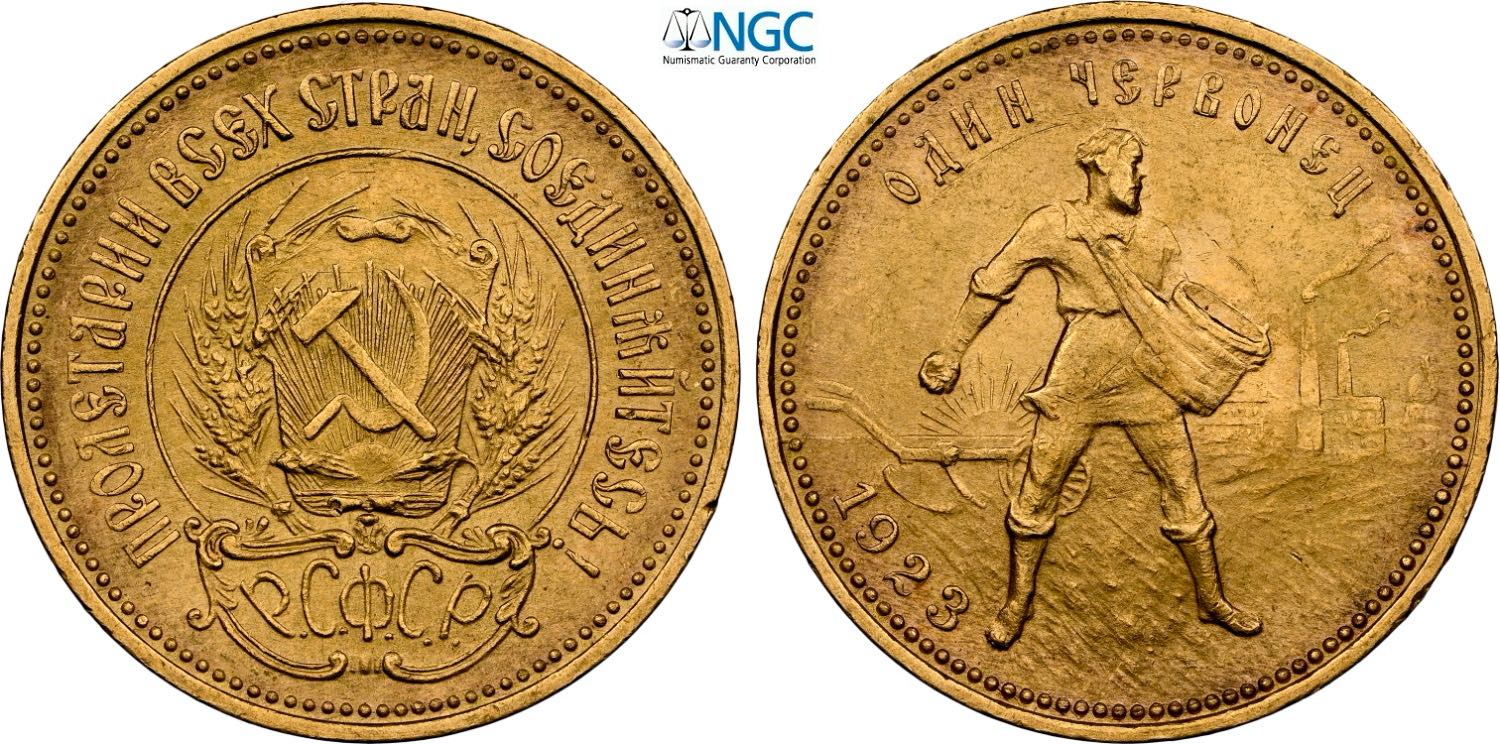 Russia, Soviet Federated Socialist Republic (1917-1922), Chervonetz 10 Roubles 1923, Au 22,6 mm 8,60 g, in Slab NGC MS62