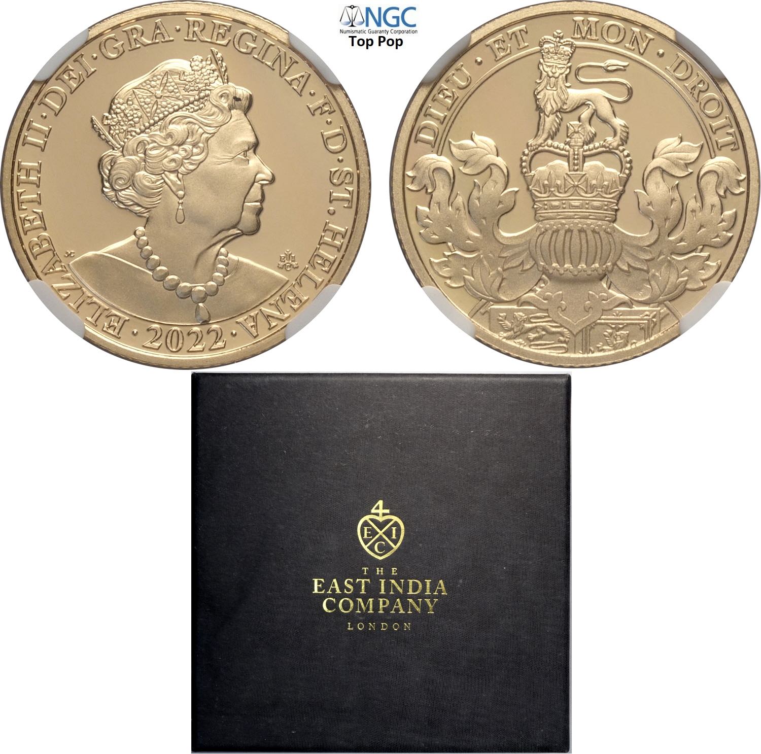 Saint Helena, East India Company, Elizabeth II (1952-2022), Sovereign 2022, Mintage: 1120 (750 in box), with original box and certificate, ...