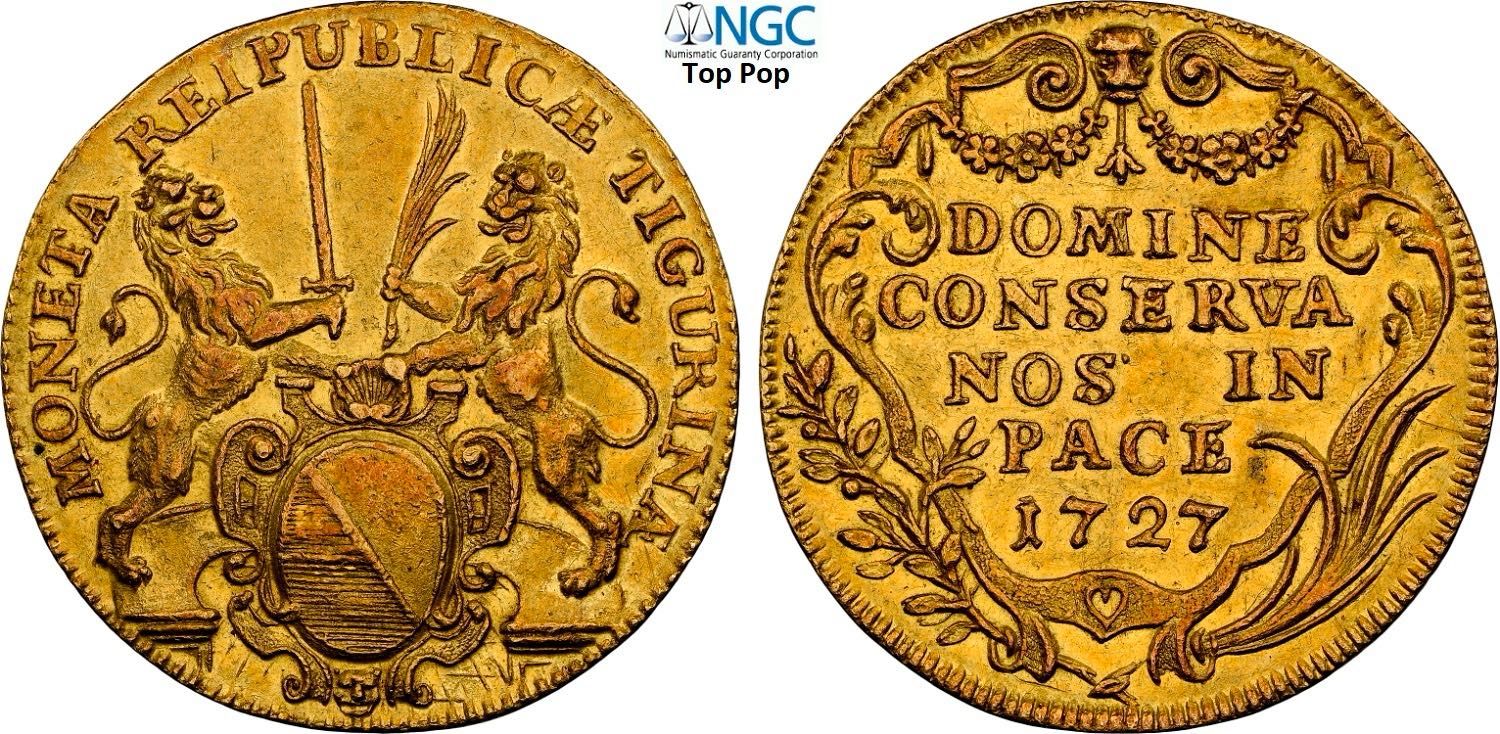 Switzerland Zurich, Republic (1648-1798), 2 Ducat 1727, Fr-485a Au 27 mm 6,93 g, in Slab NGC AU55 Top Pop! (cert. 6641706005)