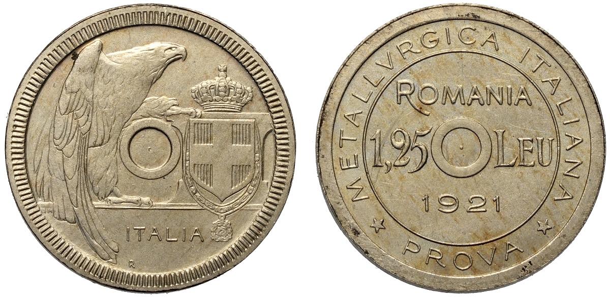Romania, Ferdinand I (1914-1927), Nickel Pattern 1,25 Leu 1921 Roma Mint, Very Rare, Sch&St-098-1.2, Ni 23,5 mm, 5,85 g, FDC