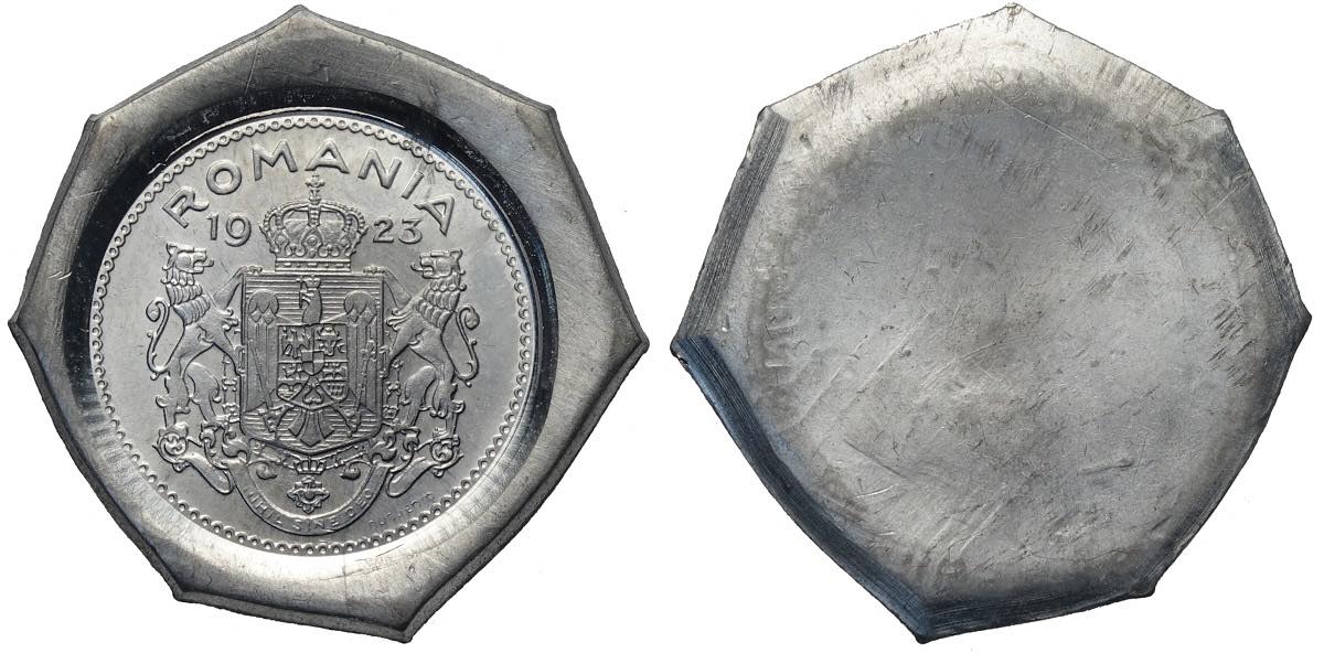 Romania, Ferdinand I (1914-1927), Lead Uniface Reverse Pattern Leu 1923 Huguenin, Sch&St-127-1.1, Pb 33 mm, 10,33 g, FDC